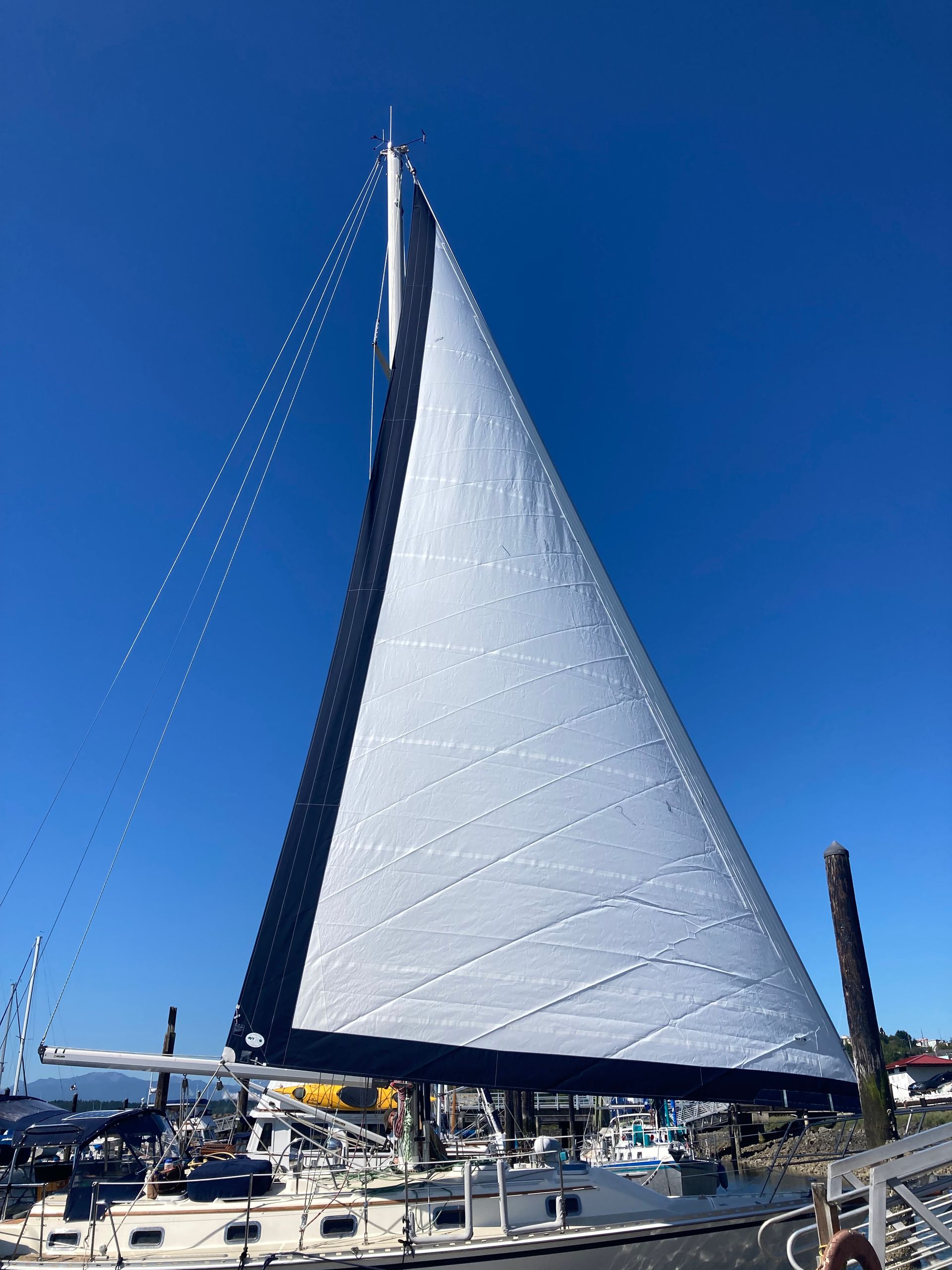 Your mainsail is your most important sail; it will be used under most conditions during your passage. Your Port Townsend Sails main will be well cut, durable, and adaptable to a wide range of voyaging conditions. In addition to the construction details described under “All Sails”, your classic mainsail will have the following specific construction details: