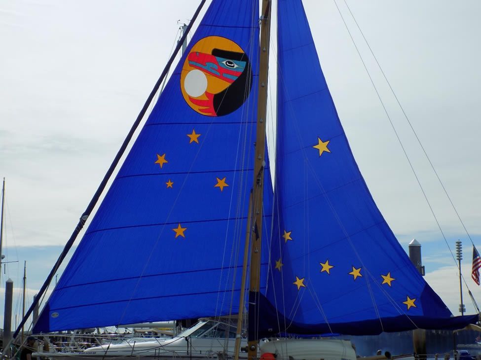 Vibrant graphics can be added to your sail through a technique that preserves the integrity of the sail. An INLAY is a graphic design set into the body of a sail. With this dynamic technique, the graphic is added to the sail in layers then the original layer of the sail is cut away to reveal a design that is integral to the sail and visible from both sides like a stained glass window. Particularly complex artwork often must be modified and simplified to create a design that lends itself to the constraints of sailmaking. We will endeavor to maintain the dynamic nature of your original artwork or ideas.